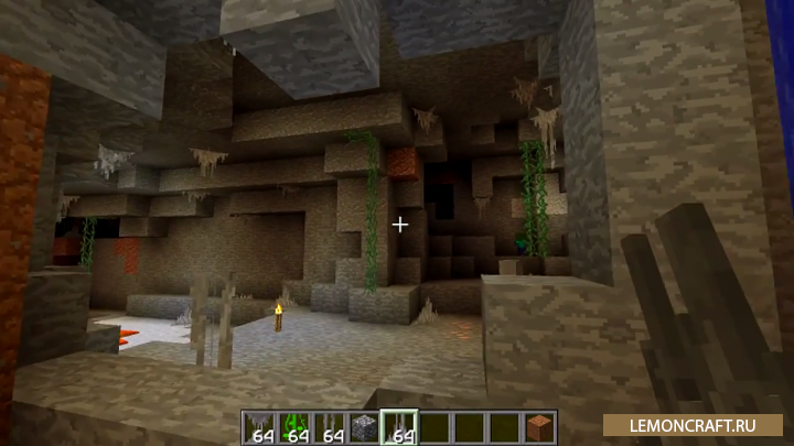 Мод на красивые пещеры Better Underground Reborn в процессе генерации пещер внесет новые элементы, которые украсят и сделают ваши исследования пещер более яркими и интересными. В основном на стенах пещер появятся различные наросты, а в самих пещерах вы сможете встретить различные растения.